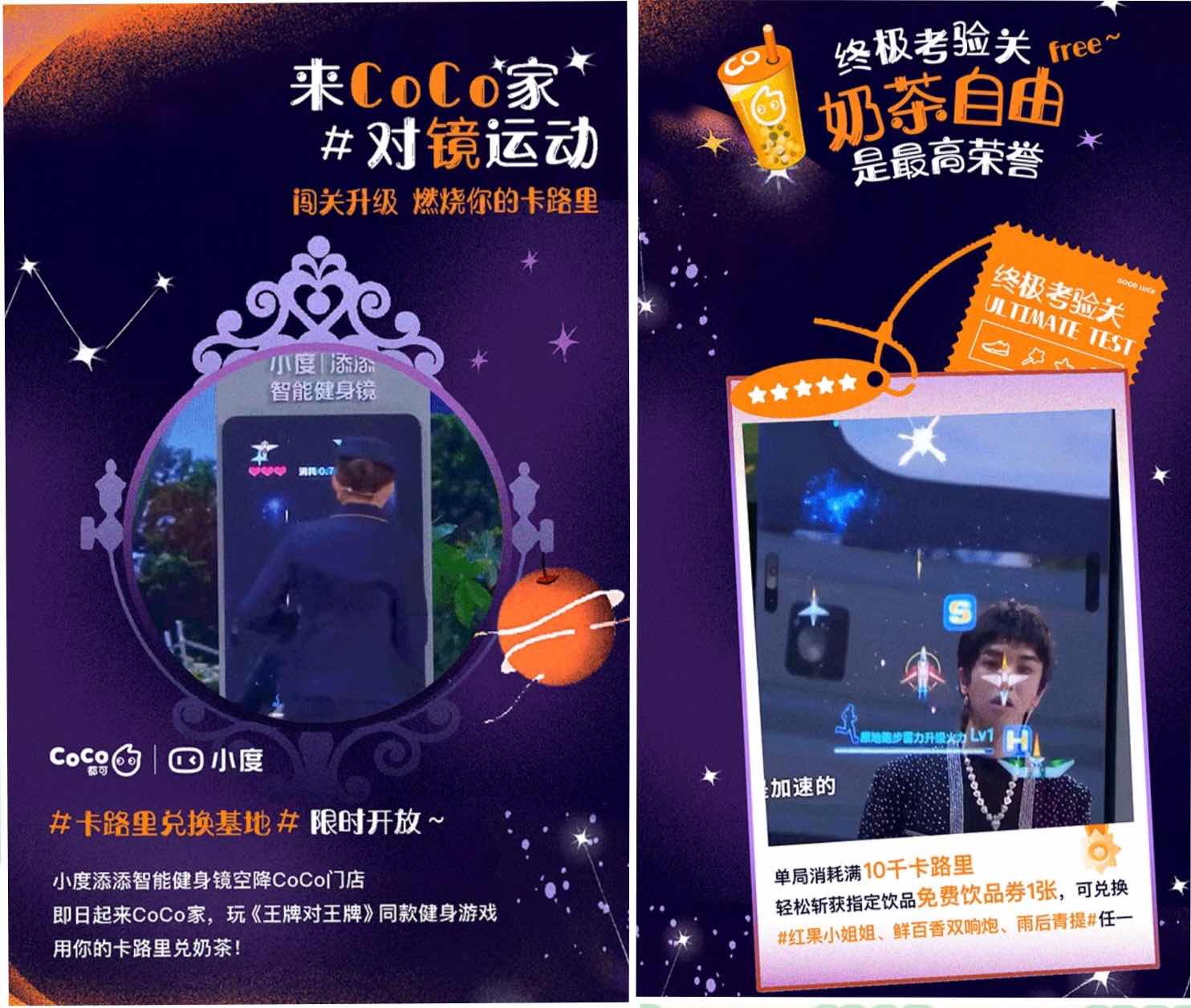 小度添添智能镜空降CoCo门店,即日起去CoCo线下85家门店,玩《王牌对王牌》同款健身游戏,就能用你的卡路里兑换奶茶,具体包含哪些店铺可以微信扫码看下活动详情。